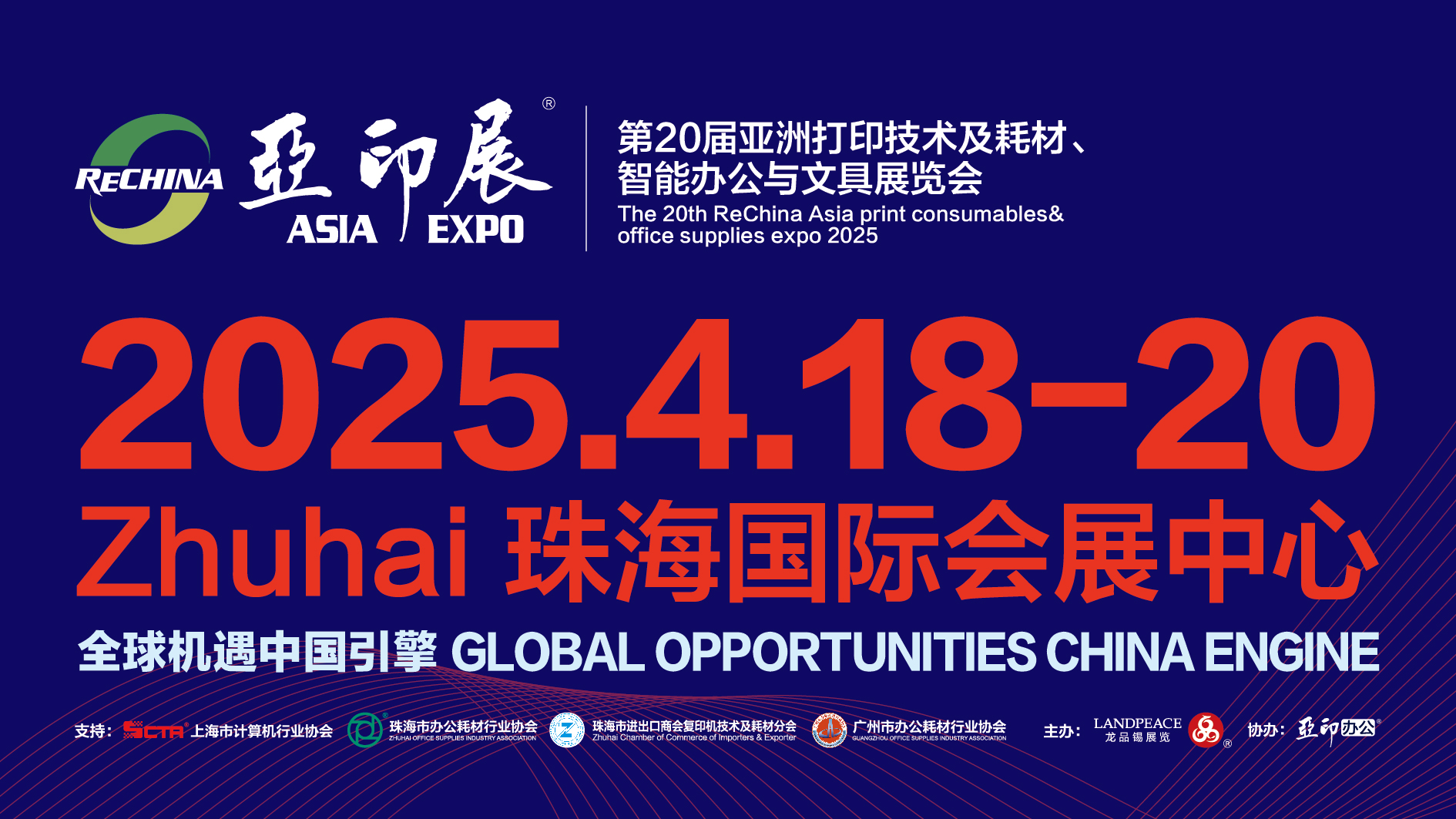 珠海第19屆亞印展,以“鏈接中國與世界”為主題,由上海市計算機(jī)行業(yè)協(xié)會、珠海市打印設(shè)備及耗材行業(yè)協(xié)會、珠海市進(jìn)出口商會復(fù)印機(jī)技術(shù)及耗材分會和廣州市辦公耗材行業(yè)協(xié)會等支持,龍品錫展覽主辦、龍品錫亞印展覽承辦,亞印辦公合辦。
